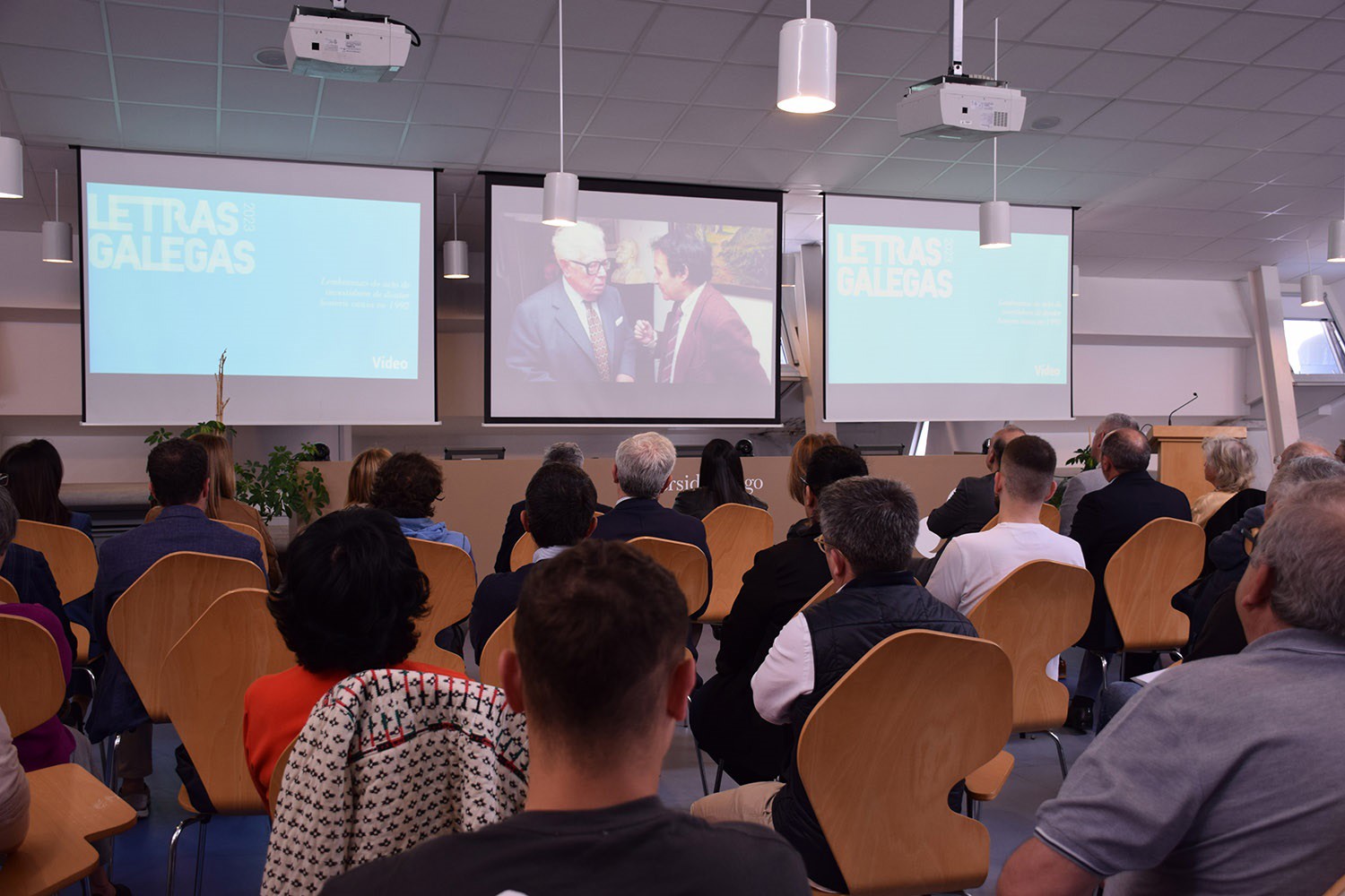 O edificio Miralles do campus universitario de Vigo acolleu este luns un acto de homenaxe ao escritor e intelectual galeguista Francisco Fernández del Riego, a quen este ano se recoñece con motivo do Día das Letras Galegas.